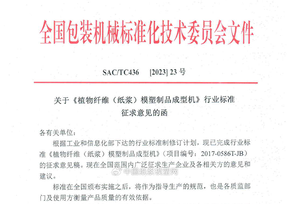 關(guān)于《植物纖維(紙漿) 模塑制品成型機(jī)》行業(yè)標(biāo)準(zhǔn)征求意見(jiàn)的函